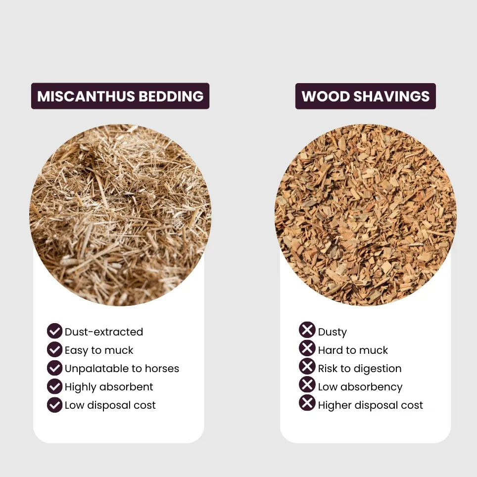 Made from finely chopped, dust-extracted Giant Miscanthus grass, this 100% biodegradable bedding offers superior absorbency, improved stall hygiene, and long-term cost savings. Miscanthus has been a trusted bedding solution in Europe for over 50 years—and now it’s available here.