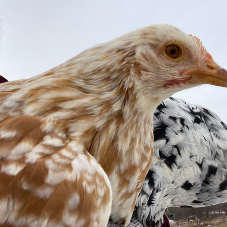 HANDS DOWN... The absolute sweetest birds on the farm! This wonderful breed is very rare; only about 2,000 exist today. The Pita Pinta on our farm are available in ROSA which is the Red and white mottled color variety. Although Pinta Pinta also are available as black and white mottled, the Rosa are just stunning and that has been our focus for this breed. Great foragers, alert and super disease resistant!
